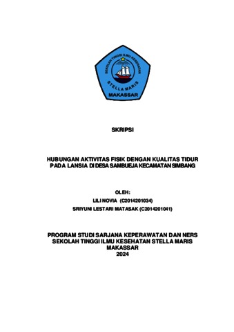 NOVIA, LILI and MATASAK, SRIYUNI LESTARI (2024) HUBUNGAN AKTIVITAS FISIK DENGAN KUALITAS TIDUR PADA LANSIA DI DESA SAMBUEJA KECAMATAN SIMBANG. Undergraduate (S1) thesis, STIK Stella Maris Makassar.