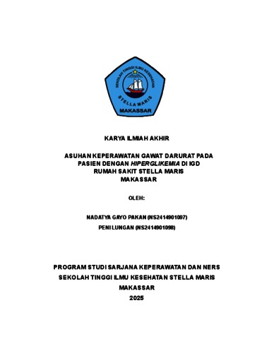 PAKAN, NADATYA GAYO and LUNGAN, PENI (2025) ASUHAN KEPERAWATAN GAWAT DARURAT PADA PASIEN DENGAN HIPERGLIKEMIA DI IGD RUMAH SAKIT STELLA MARIS MAKASSAR. Karya Ilmiah Akhir (KIA) thesis, STIK Stella Maris Makassar.