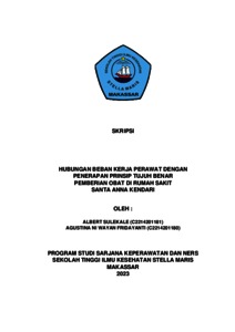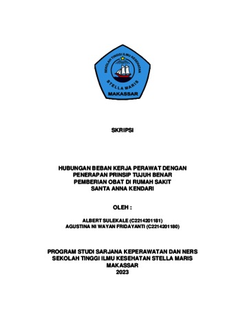 SULEKALE, ALBERT and FRIDAYANTI, AGUSTINA NI WAYAN (2023) HUBUNGAN BEBAN KERJA PERAWAT DENGAN PENERAPAN PRINSIP TUJUH BENAR PEMBERIAN OBAT DI RUMAH SAKIT SANTA ANNA KENDARI. Undergraduate (S1) thesis, STIK Stella Maris Makassar.
