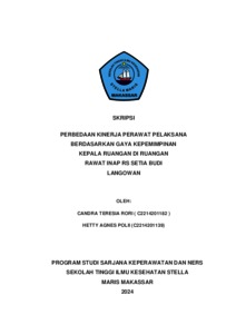 RORI, CANDRA TERESIA and POLII, HETTY AGNES (2024) PERBEDAAN KINERJA PERAWAT PELAKSANA BERDASARKAN GAYA KEPEMIMPINAN KEPALA RUANGAN DI RUANGAN RAWAT INAP RS SETIA BUDI LANGOWAN. Undergraduate (S1) thesis, STIK Stella Maris Makassar.
