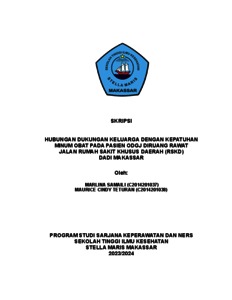 Samaili, Marlina and Teturan, Maurice Cindy (2024) HUBUNGAN DUKUNGAN KELUARGA DENGAN KEPATUHAN MINUM OBAT PADA PASIEN ODGJ DIRUANG RAWAT JALAN RUMAH SAKIT KHUSUS DAERAH (RSKD) DADI MAKASSAR. Undergraduate (S1) thesis, STIK STELLA MARIS MAKASSAR.